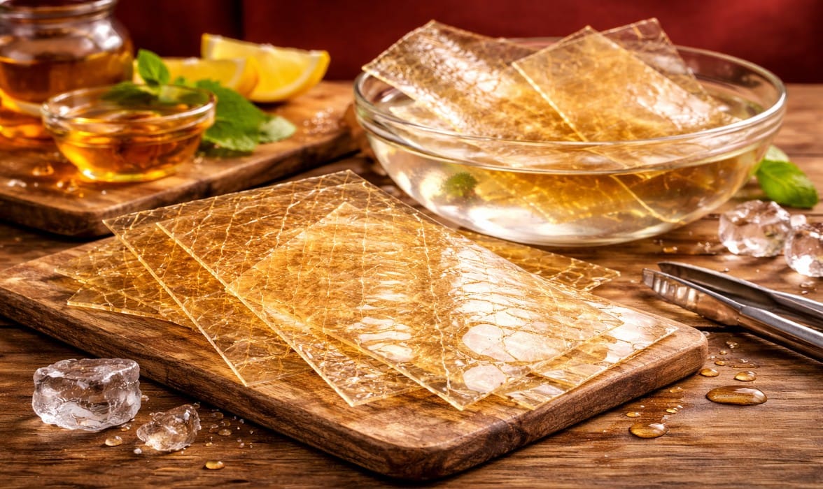 ABCL Gelatin Sheets are crafted for professional chefs and manufacturers who demand the highest quality and consistency in sheet gelatin. Manufactured under stringent GMP conditions, these sheets exhibit uniform thickness, exceptional clarity, and unparalleled gel strength, with Bloom values ranging from 160 to 220 g. Our gelatin sheets dissolve rapidly in both cold and warm liquids, ensuring fast hydration and smooth incorporation. Produced with food and pharmaceutical-grade raw materials, ABCL sheets guarantee allergen-free properties, non-GMO certification, and full batch traceability for complete quality assurance.